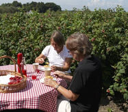 Vårt Halloncafé är öppet året runt och erbjuder hembakade kakor, dryck och lättare lunch. Varje dag ser köket till att det finns nybakade kakor och lagad lunch. Glassboden är öppen för säsongen och serverar vår hemmagjorda glass i gårdens egna odlings smaker varje dag.